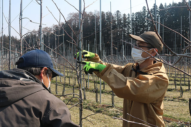 「研修では作物の育て方だけではなく、自然と向き合う大変さや農業の奥深さも学ぶ事が出来ました。これからは自分の責任で農業をやっていくことになりますが、自分なりの農業を少しずつ形にしていきたいと思っています。まだわからないことも多いですが、日々勉強しながらいいりんごを作って、地域に貢献できるよう頑張っていきたいと思います。これからもどうぞよろしくお願いいたします。」