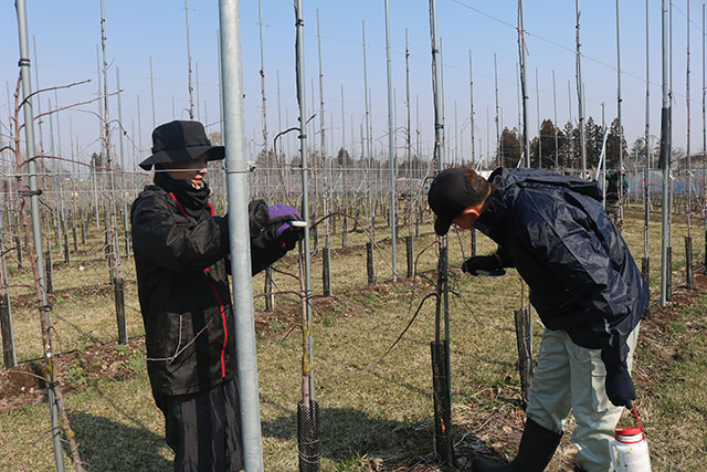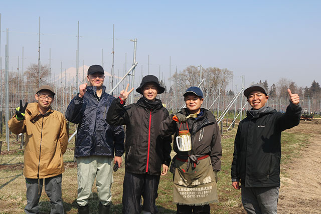 弘果総研りんご高密植栽培経営モデル園では、この度第1期農業研修生が2年間の研修期間を終了し、研修園地を継承し独立いたしました。